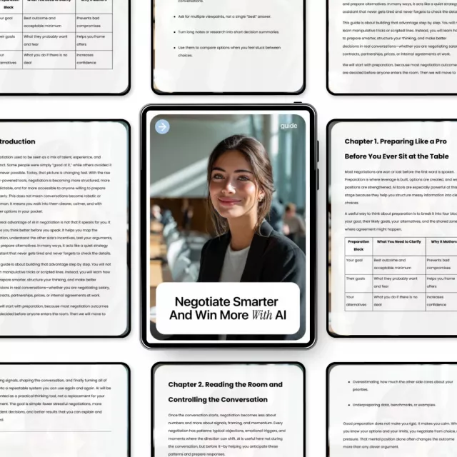 Unlike generic negotiation books, this resource is built for the modern world. It shows you not just what to do, but how to use AI tools to think faster, plan smarter, and stay one step ahead. Every strategy is practical, easy to apply, and built for real conversations.