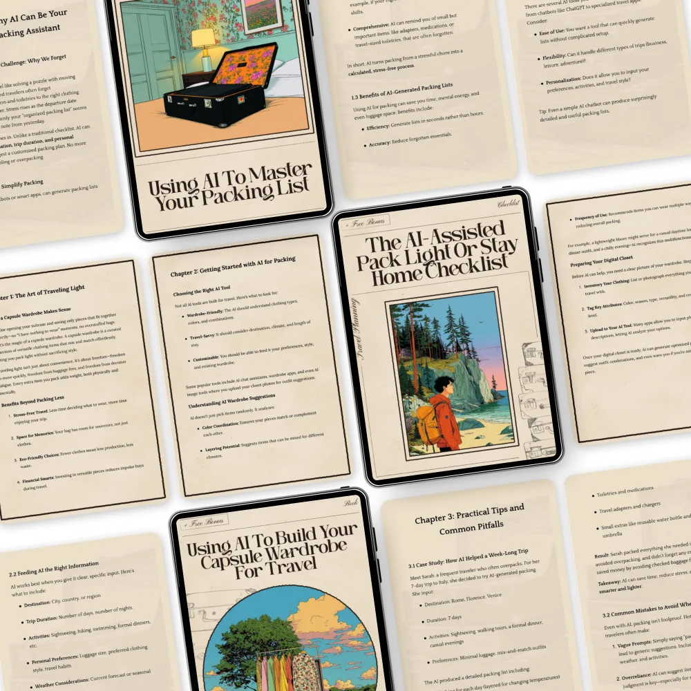 Unlike other packing guides, Never Forget a Thing The AI Packing System integrates AI to make your packing smarter, more personalized, and hassle-free. Instead of generic advice, you get tailored recommendations that fit your style, destination, and travel needs. This isn’t just a checklist—it’s a complete AI-assisted packing solution.