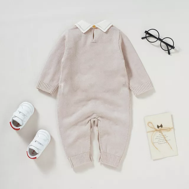 Wrap your little one in pure comfort with this 100% cotton knit newborn romper. Designed for infants and toddlers from 0 to 12 months, this one-piece outfit brings together cozy softness and timeless style. The breathable knit fabric keeps your baby comfortable all day, while the gentle stretch allows freedom of movement during play, naps, and snuggles. Its solid color and classic turn-down collar make it a perfect choice for both casual days at home and special outings.