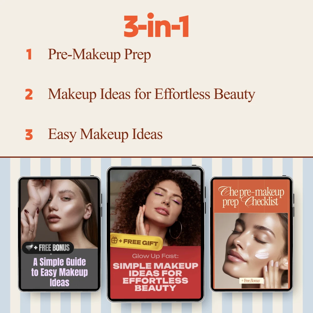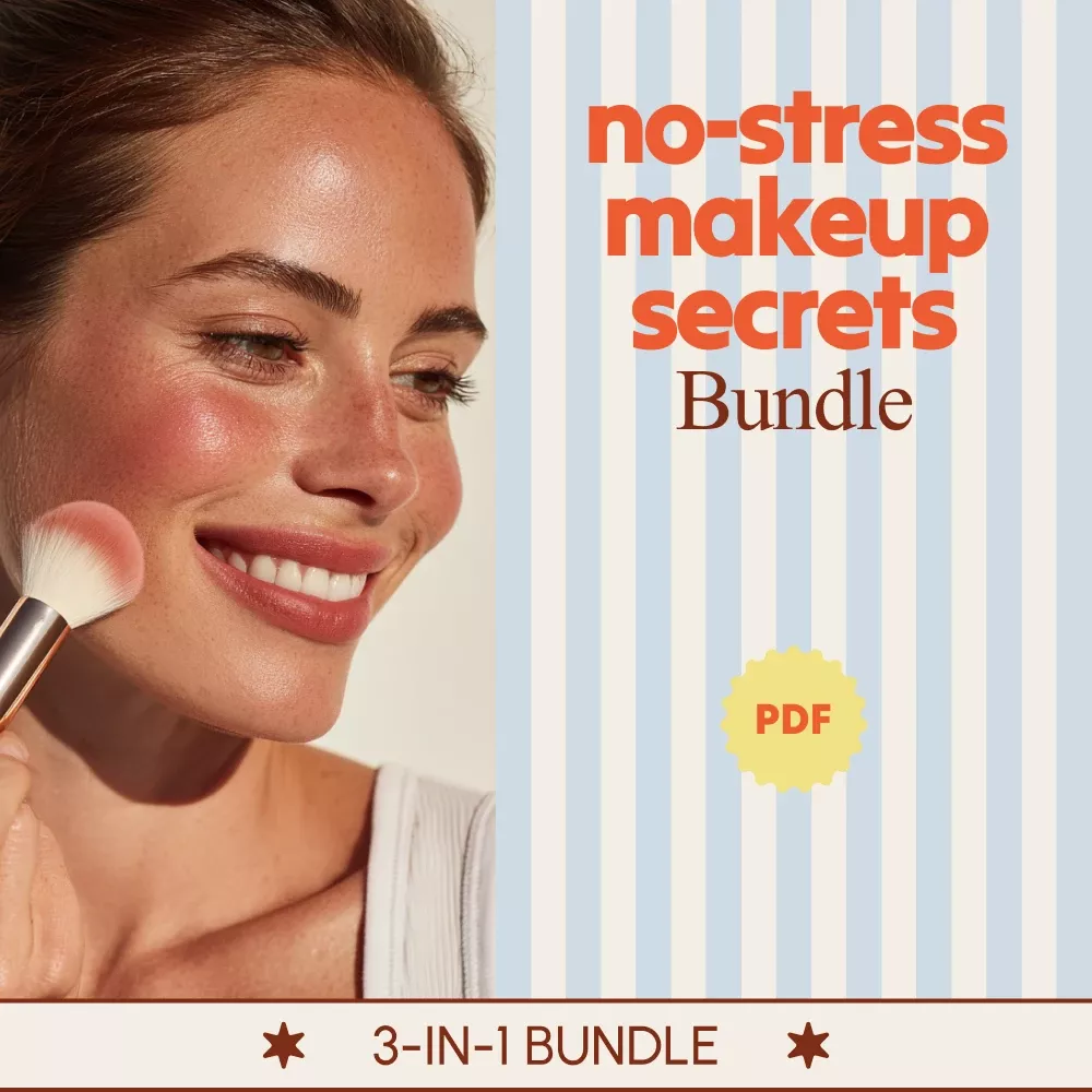 If you love looking put together but hate complicated routines, the No-Stress Makeup Secrets Bundle was made for you. This 3-in-1 digital download collection is designed to simplify your routine, save you time, and help you feel confident with makeup that actually fits your real life. Whether you’re getting ready for work, a quick outing, or just want to feel more polished day to day, these resources focus on easy makeup ideas that are practical, beginner-friendly, and stress-free.
