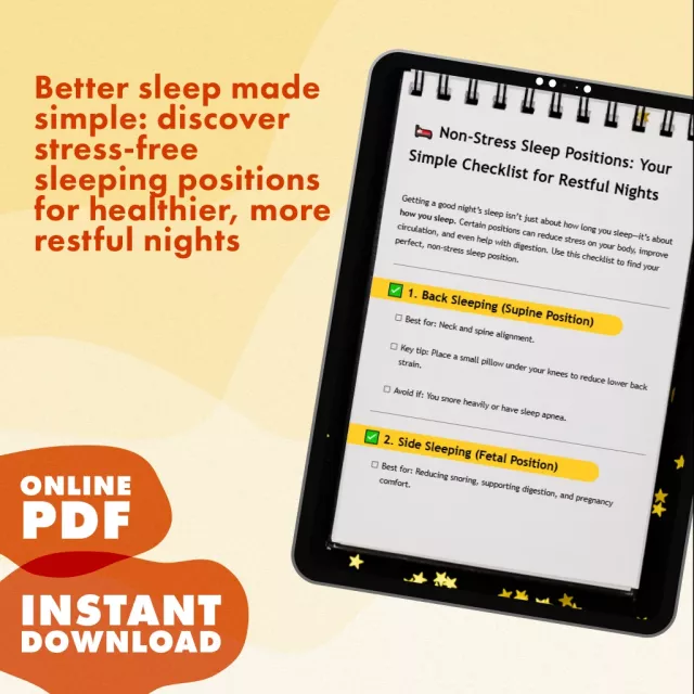 Non-Stress Sleep Positions: Your Simple Checklist for Restful Nights | Digital Download Guide | Better Sleep eBook for Relaxation, Spine Alignment & Stress-Free Rest
