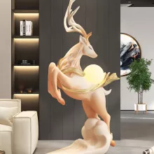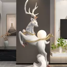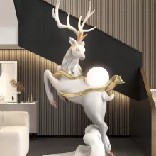 Elevate your home décor with the stunning Nordic Elk Floor Lamp, a masterful blend of artistry and functionality. This large floor decoration features a luminous deer sculpture that serves as both a captivating light source and an elegant piece of art. Its Nordic-inspired design makes it a versatile addition to modern, light luxury, or Northern European interiors. Standing at 47 inches tall, this hand-crafted resin elk statue exudes charm and sophistication, perfect for creating a warm and welcoming ambiance in your living space.