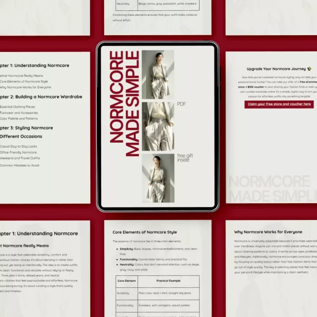 This eBook isn’t just another fashion guide. “Normcore Made Simple” is a carefully crafted resource that not only teaches you how to wear normcore outfit ideas but also gives you the confidence to mix and match your pieces effortlessly. It’s perfect for anyone looking to embrace a minimalist approach to fashion while still expressing individuality. This guide is packed with actionable advice that you can start applying to your wardrobe immediately.