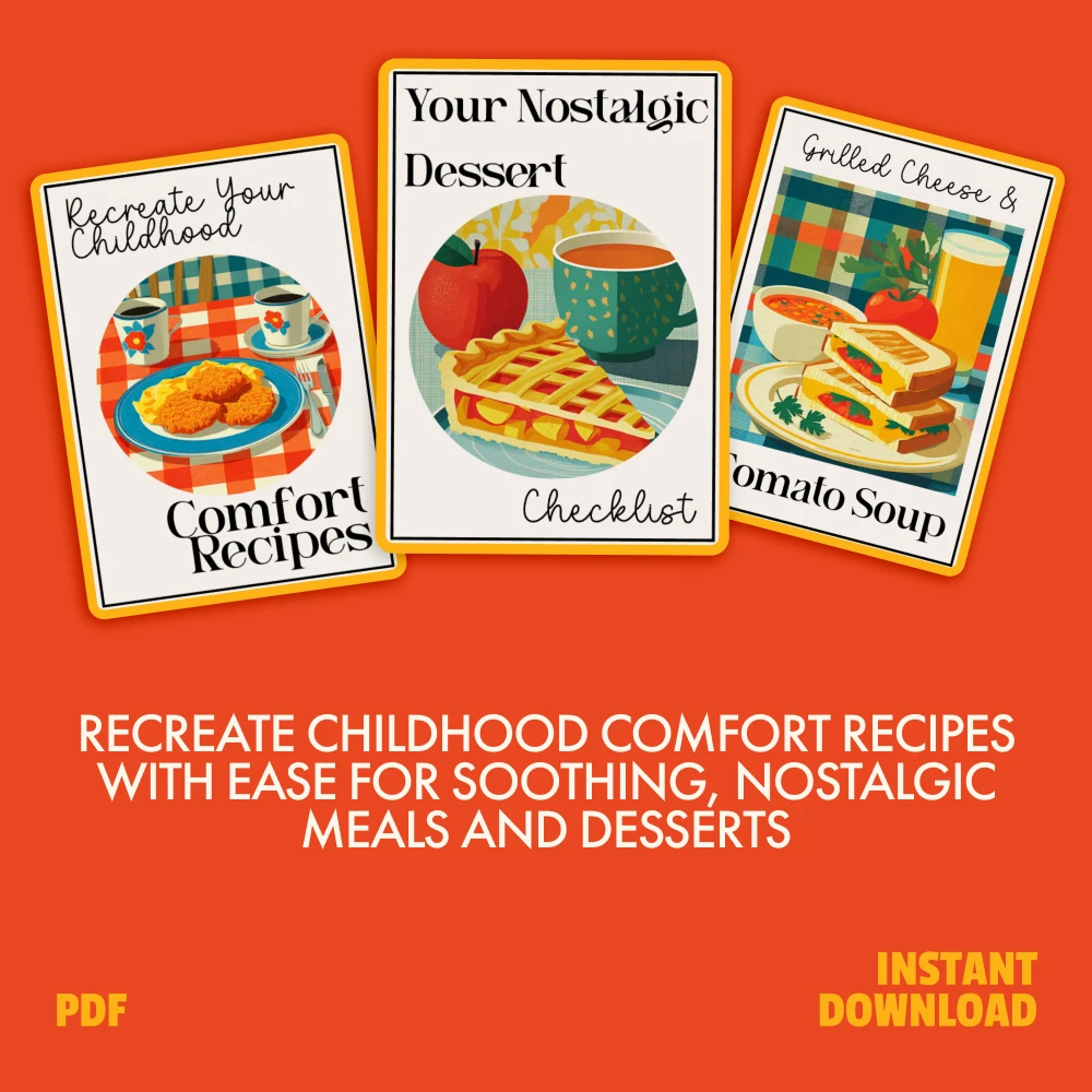 Ready to bring back those soothing childhood memories with every bite? The Nostalgia Meal Toolkit for Soothing Nights is just a click away. Whether you’re in the mood for a comforting grilled cheese and tomato soup or a sweet nostalgic dessert, this 3-in-1 bundle will make your meal prep a breeze. Download it now and start recreating your childhood comfort recipes today!