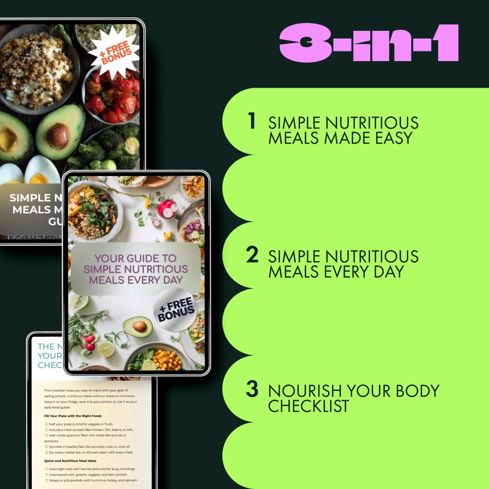 Don’t wait to start enjoying quick nutritious meals that make a difference in your health. Download the Nutritious Meals Made Simple 3-in-1 Bundle today and start cooking meals that are good for both your body and your busy schedule. Get started now and take the first step toward a healthier, happier you!