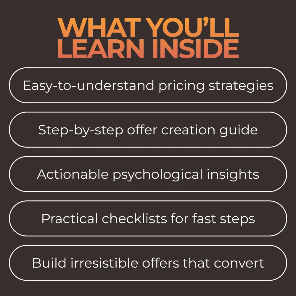 • Offer Pricing Psychology Simplified – Understand the psychology behind pricing and how to leverage it to boost your sales.