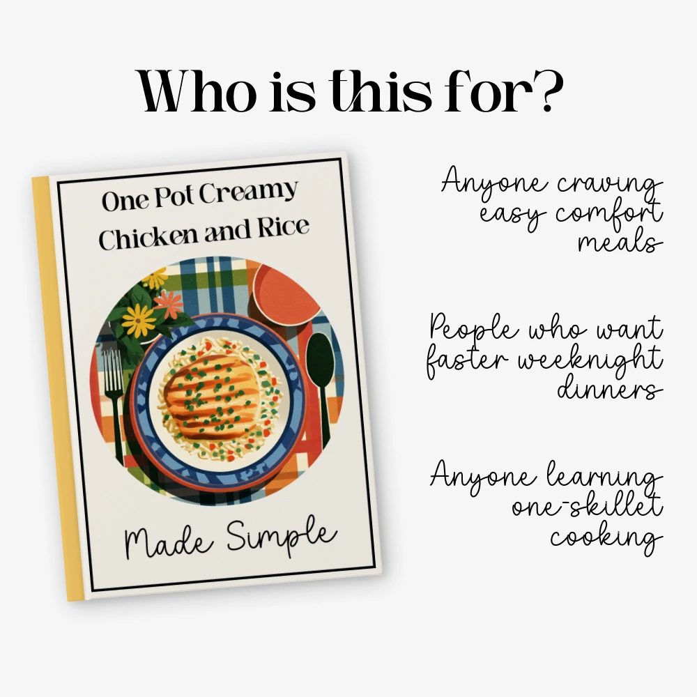 This digital guide is perfect for home cooks, busy parents, students, and anyone who wants delicious comfort food without spending hours in the kitchen. If you love cozy meals, minimal cleanup, and want perfect results from a single pan, this one skillet creamy chicken and rice recipe guide is made for you.