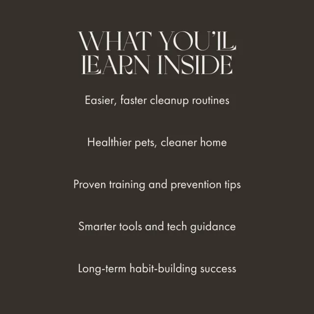 This eBook is perfect for new and seasoned pet owners, foster parents, and anyone who wants a cleaner home without losing patience or love for their furry (or feathered) friends.