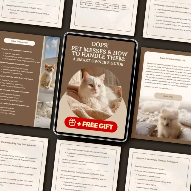 Download Oops! Pet Messes & How to Handle Them: A Smart Owner’s Guide today and discover how to clean smarter, train better, and build a fresher, more peaceful home — even when your pets have other plans!