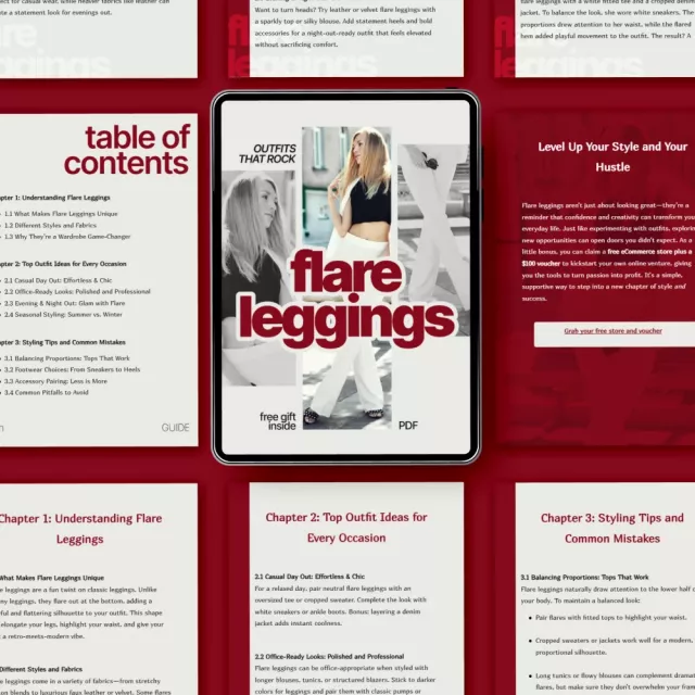 Looking for the perfect outfit to pair with flare leggings? Whether you’re dressing for a casual day out, a chic office look, or a glamorous night out, Outfits That Rock Flare Leggings is your go-to guide to mastering this trendy yet versatile piece. Flare leggings are a wardrobe game-changer, and this eBook will show you how to style them for any occasion. With easy-to-follow outfit ideas, expert styling tips, and a comprehensive breakdown of flare leggings’ unique appeal, you’ll be ready to rock your look with confidence!