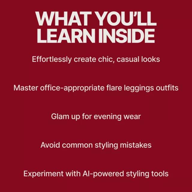Inside this digital guide, you’ll find everything you need to know about styling flare leggings, from casual wear to office-ready attire to evening glam. The guide includes: