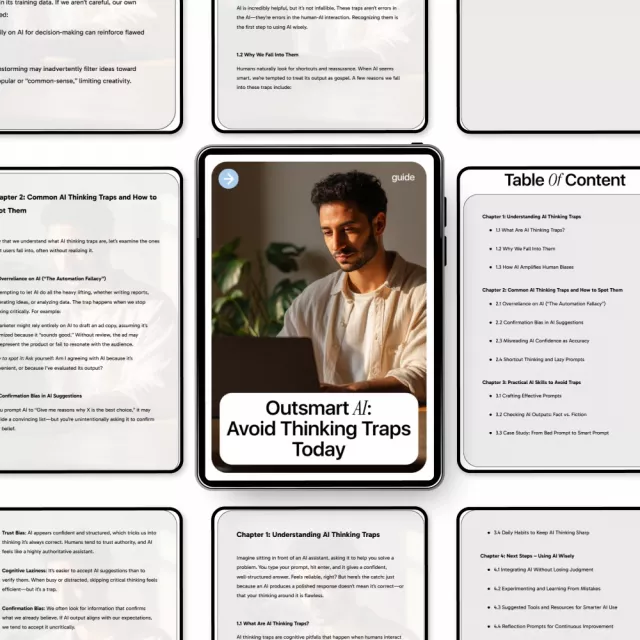 AI can be an incredible thinking partner—but only if you know how to use it wisely. Outsmart AI: Avoid Thinking Traps Today is a practical, easy-to-follow digital guide designed to help you recognize and avoid the hidden mental shortcuts that can quietly undermine your decisions when working with AI tools. Instead of blindly trusting outputs or feeling overwhelmed by confident-sounding answers, this resource teaches you how to stay sharp, skeptical, and in control.