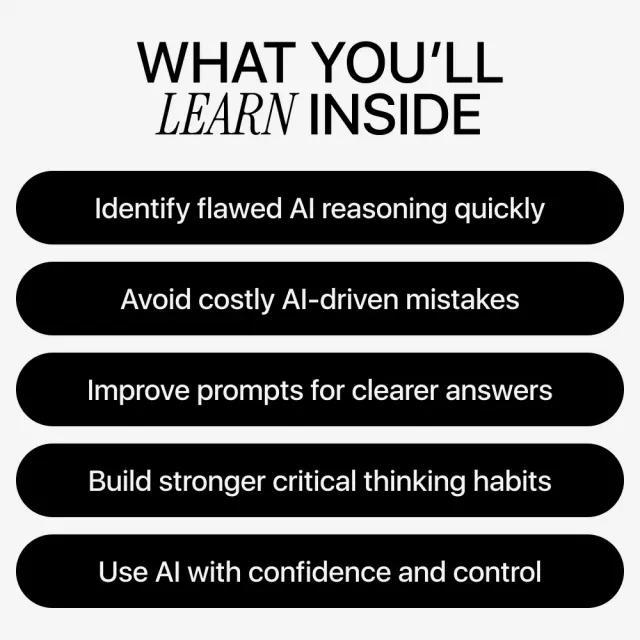 Strengthen your critical thinking, improve your AI interactions, and make smarter decisions starting today. Download now and learn how to outsmart AI—before its logic errors cost you time, trust, or results.