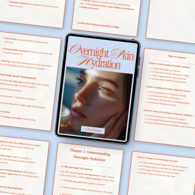Unlike generic skincare advice, Overnight Skin Hydration focuses entirely on nighttime care, combining science-backed education, real-life application, and a relatable case study. It’s practical, easy to digest, and designed for real routines, not unrealistic 10-step regimens.
