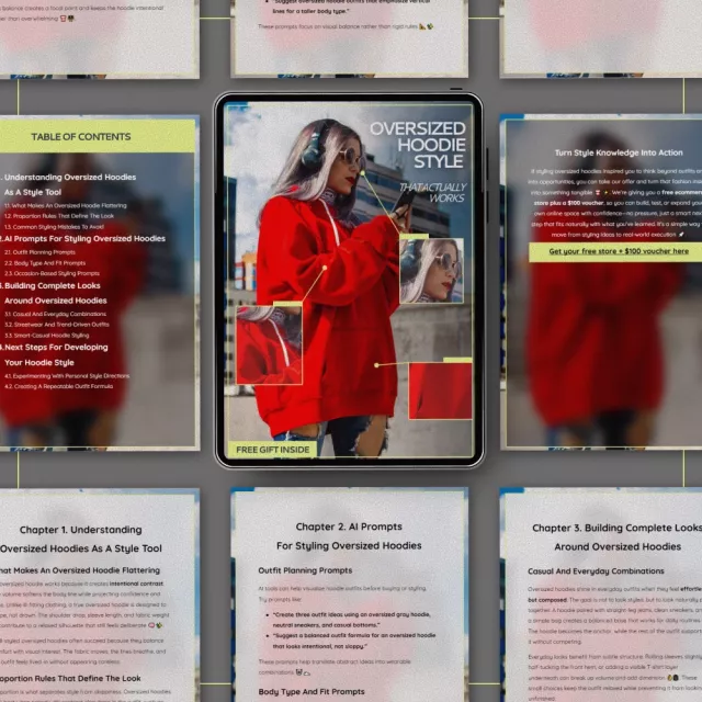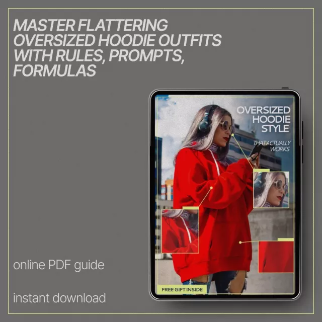 This guide goes beyond trends and focuses on structure, proportion, and repeatable styling strategies. You’ll learn how to style oversized hoodies in a way that suits your body, your lifestyle, and your personal aesthetic. The included AI prompts help you generate outfit ideas on demand, making this a long-term styling tool rather than a one-time read.