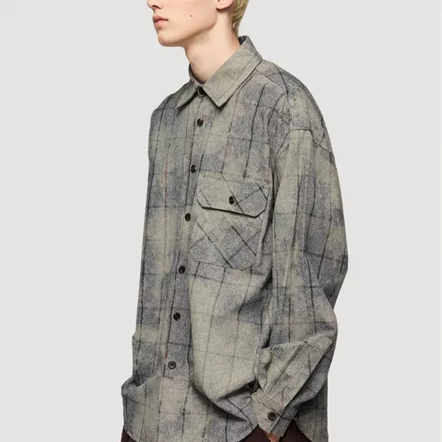 This shirt jacket stands out for its oversized cut and versatile design. It works as a shirt, a light jacket, or even an extra layer over your streetwear fits. The single-breasted closure and turn-down collar add a clean, refined touch, while still keeping that laid-back vibe. It’s not just a basic plaid shirt – it’s a statement staple for your everyday style.