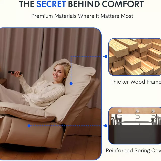 This recliner is best used in the living room for relaxing evenings, in the nursery for gentle rocking and feeding, or in the entertainment room for immersive movie or gaming sessions. What makes this product truly special is its combination of oversized comfort, functional design, and modern style—giving you luxury and practicality in one chair.