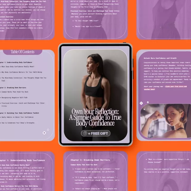 Are you ready to embrace your body and feel confident every single day? “Own Your Reflection: A Simple Guide to True Body Confidence” is your roadmap to understanding and transforming your relationship with your body. Whether you’re struggling with self-doubt, dealing with negative self-talk, or simply want to boost your confidence, this digital guide provides the practical tools you need to build lasting body confidence. Download it today and begin your journey to feeling empowered in your own skin!