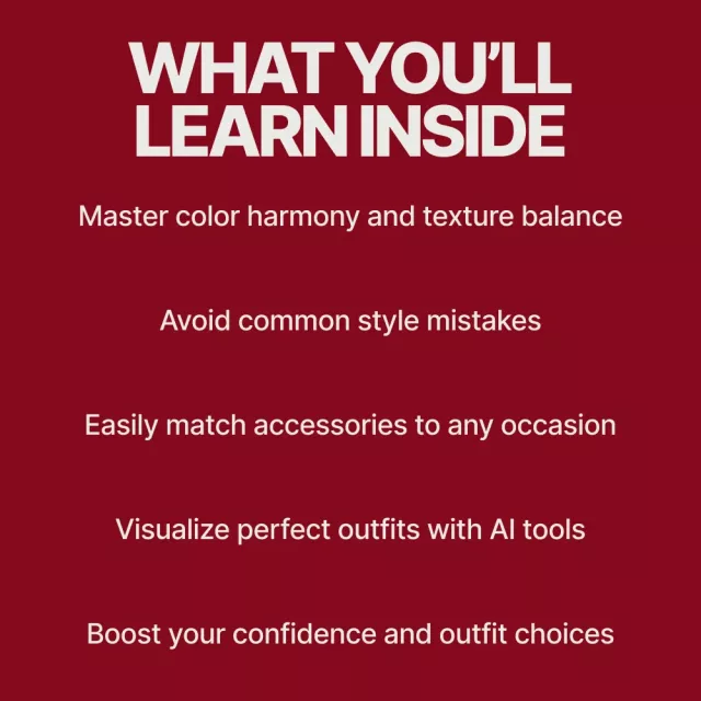 • Comprehensive Guide: 4 in-depth chapters covering everything from color theory to accessory breakdowns and style mistakes.
