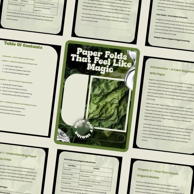 Paper Folds That Feel Like Magic is a gentle, inspiring ebook designed to turn simple sheets of paper into moments of calm, focus, and creative achievement. Whether you are completely new to origami or looking for a more mindful approach to learning, this digital guide walks you through the art step by step—without overwhelm, pressure, or complicated diagrams. Created especially for origami for beginners, this ebook focuses on understanding, confidence, and enjoyment just as much as finished models.