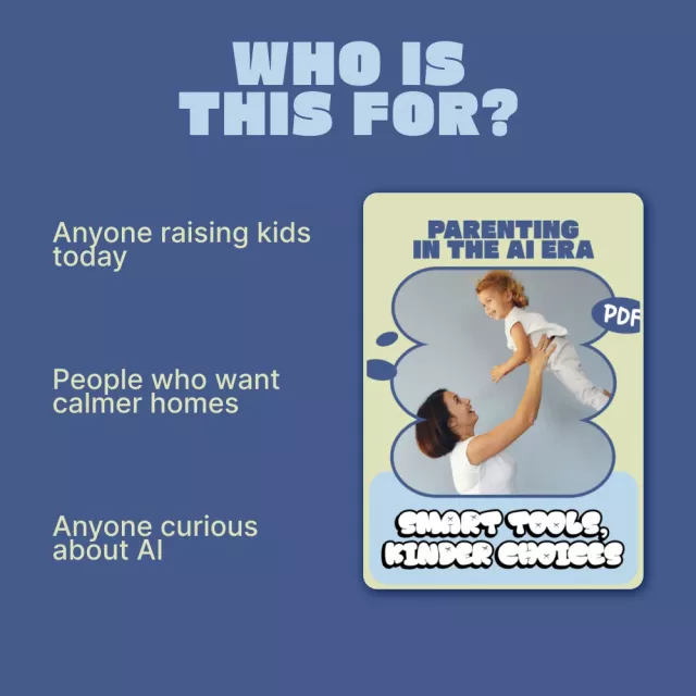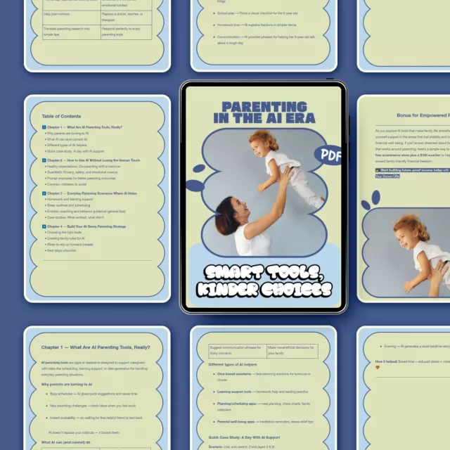 Parenting today comes with new questions, new pressures, and powerful new tools. Parenting in the AI Era: Smart Tools, Kinder Choices is a practical, reassuring digital guide created for parents who want to use technology thoughtfully without losing warmth, intuition, or connection. This guide shows how modern parents can partner with AI in realistic, ethical, and human-centered ways. Whether you are curious, cautious, or already experimenting with smart tools, this resource helps you move forward with clarity and confidence.