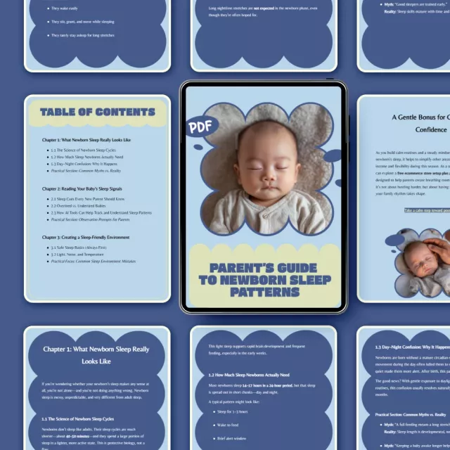 Those early weeks with a newborn can feel overwhelming, especially when sleep is unpredictable and advice feels conflicting. The Parent’s Guide to Newborn Sleep Patterns is a gentle, practical digital guide designed to help you understand what’s normal, what’s not, and how to respond with confidence. Instead of rigid schedules or unrealistic promises, this guide explains newborn sleep patterns in a calm, realistic way that supports both your baby and your peace of mind.