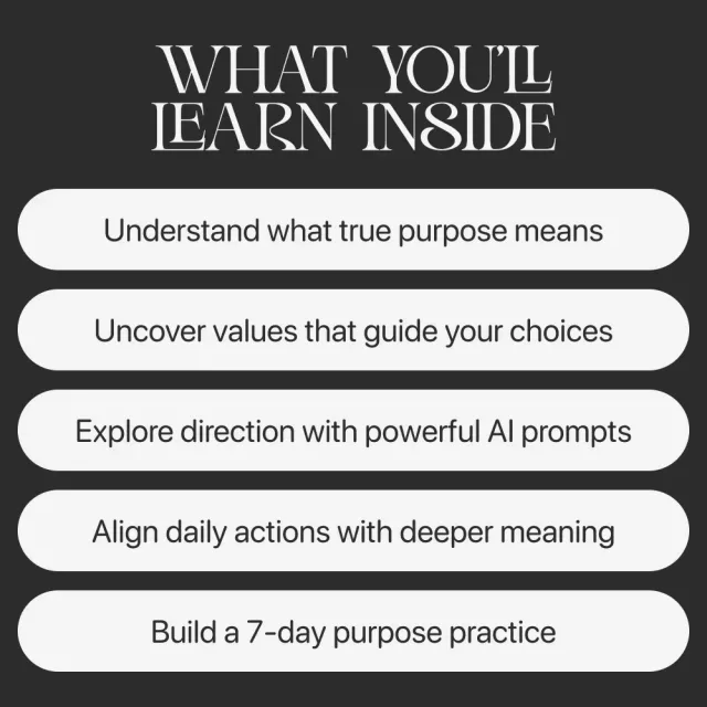 The 7-day guided practice is an absolute gem π Each day brought new insights which I could turn into small but meaningful daily habits. Now that's living intentionally! What surprised me most was how much confidence I gained from having a clear sense of direction. Making decisions became less daunting because they aligned with my goals and values instead of contradicting them π The biggest takeaway for me? Clarity - knowing who you are, what drives you, why you make certain choices... It all comes together to reveal your true calling π If anyone feels lost or unsure about their path in life (like I did), give this guide a shot.