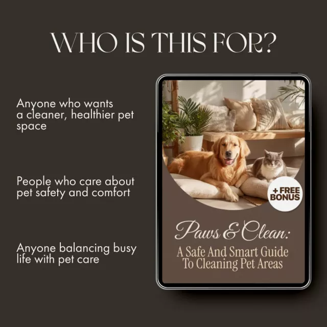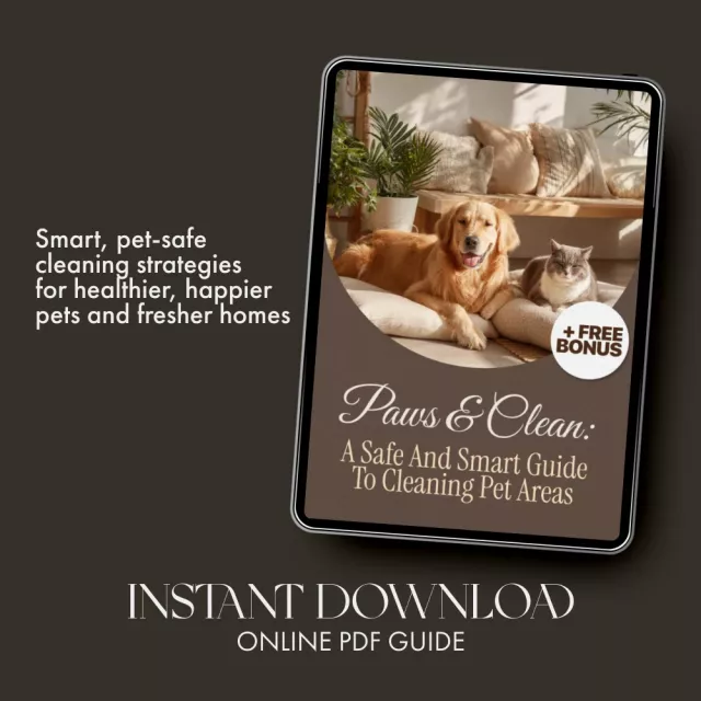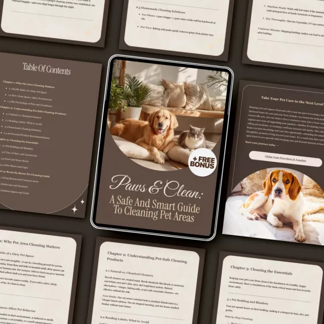 Transform the way you clean with Paws & Clean: A Safe and Smart Guide to Cleaning Pet Areas. Download your copy today and start creating a spotless, safe, and happy space for your pets—because a clean home means a healthier, more joyful companion!
