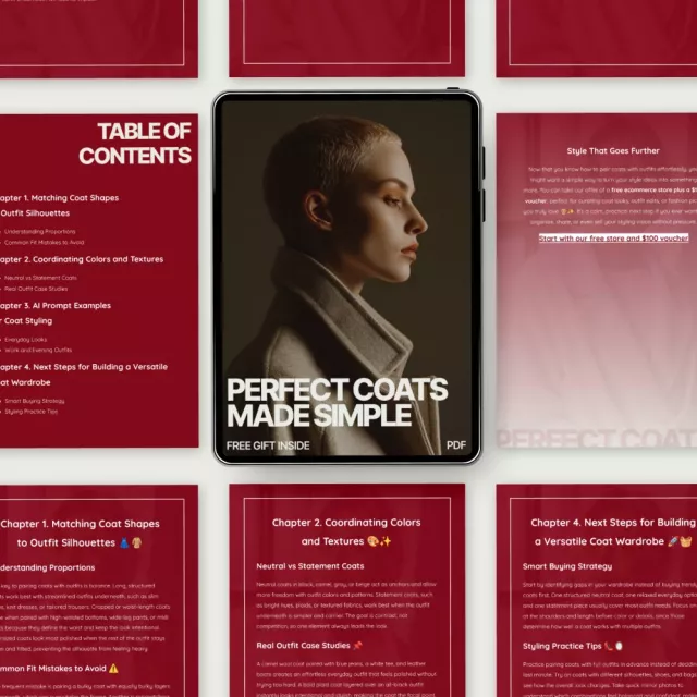 Unlike generic fashion ebooks, Perfect Coats Made Simple focuses on real outfits, real proportions, and modern tools like AI styling prompts. It combines visual thinking, practical buying advice, and repeatable styling systems, so you’re not just inspired—you’re equipped.