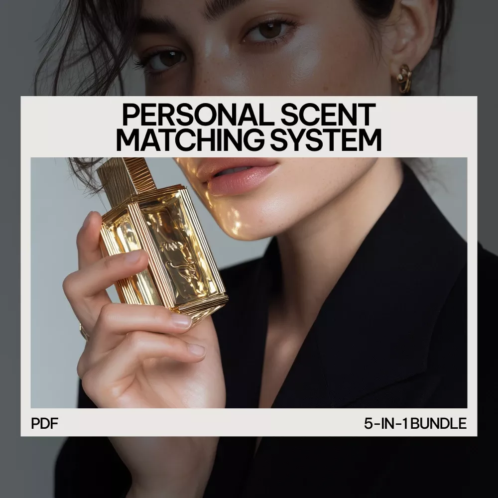 If you’re ready to stop wondering “What fragrance should I wear?” and start choosing with confidence, the Personal Scent Matching System is your perfect starting point. Download this 5-in-1 bundle today and discover the art of fragrance selection in a way that is both enjoyable and informative. Your perfect scent awaits!