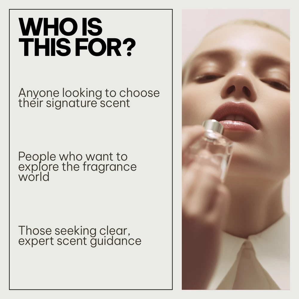 The Personal Scent Matching System is perfect for anyone looking to elevate their fragrance game. Whether you’re a perfume enthusiast, a newbie trying to figure out “What fragrance should I wear?” or someone looking to build a curated collection of scents, this bundle is your go-to resource. It’s designed for individuals who want to feel confident in their fragrance choices and understand the intricacies of perfume selection. No matter your level of experience, this bundle has something valuable to offer.