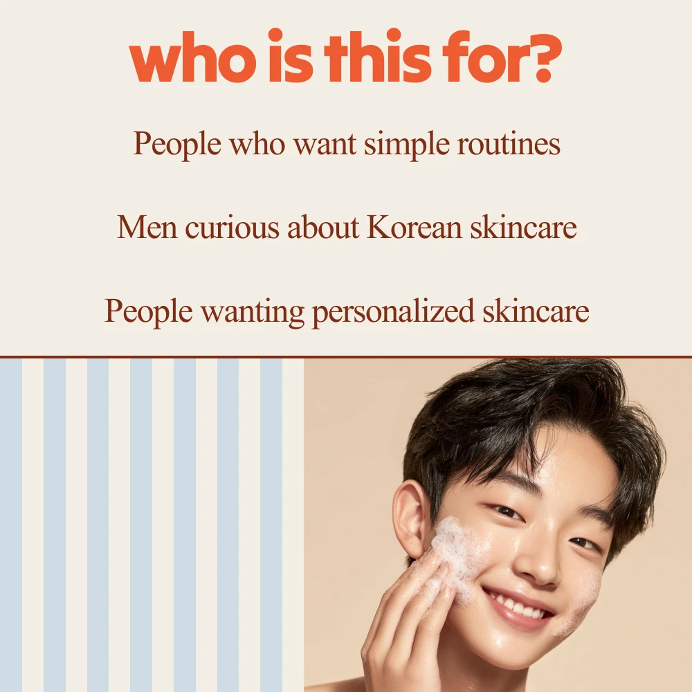 This bundle is ideal for men who want smarter, simpler skincare—especially those over 40, beginners overwhelmed by product choices, or anyone curious about Korean skincare without the hype. If you value personalized skincare for men that fits real life, this collection was made for you.