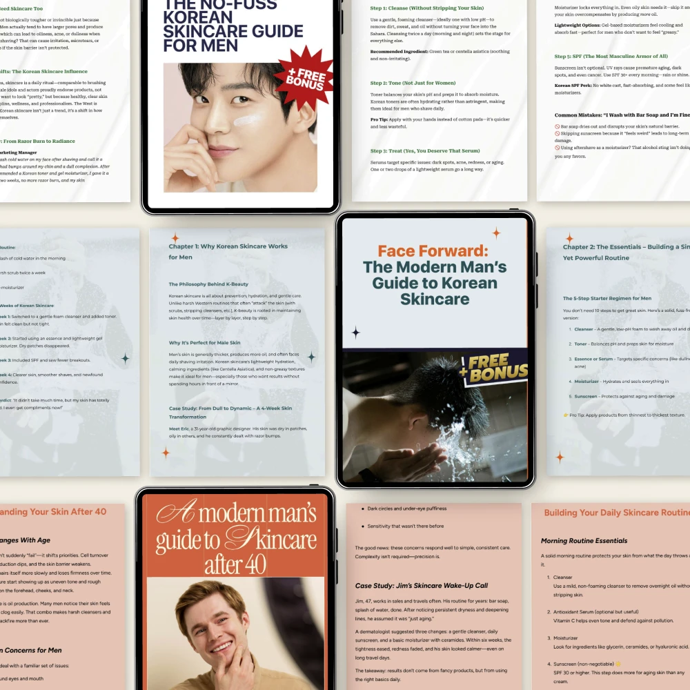 Unlike generic skincare eBooks, this bundle focuses on flexibility and personalization. You’re not forced into one rigid routine. Instead, you’ll learn how to make informed decisions based on your own skin, preferences, and lifestyle—making this a truly personalized skincare for men solution.