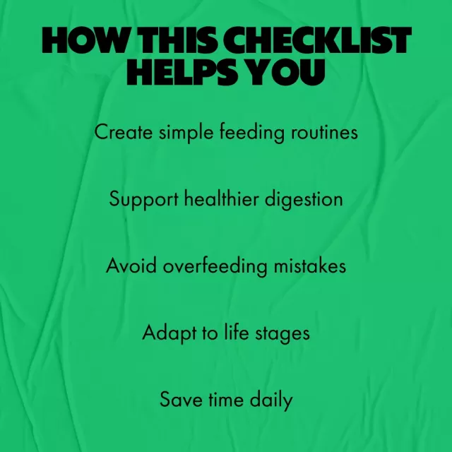 Unlike generic feeding charts, this checklist focuses on flexibility, consistency, and personalization. It combines practical feeding guidance with modern AI optimization prompts, helping you create a routine that evolves with your pet. The simple checklist format makes it easy to use daily, not just once.