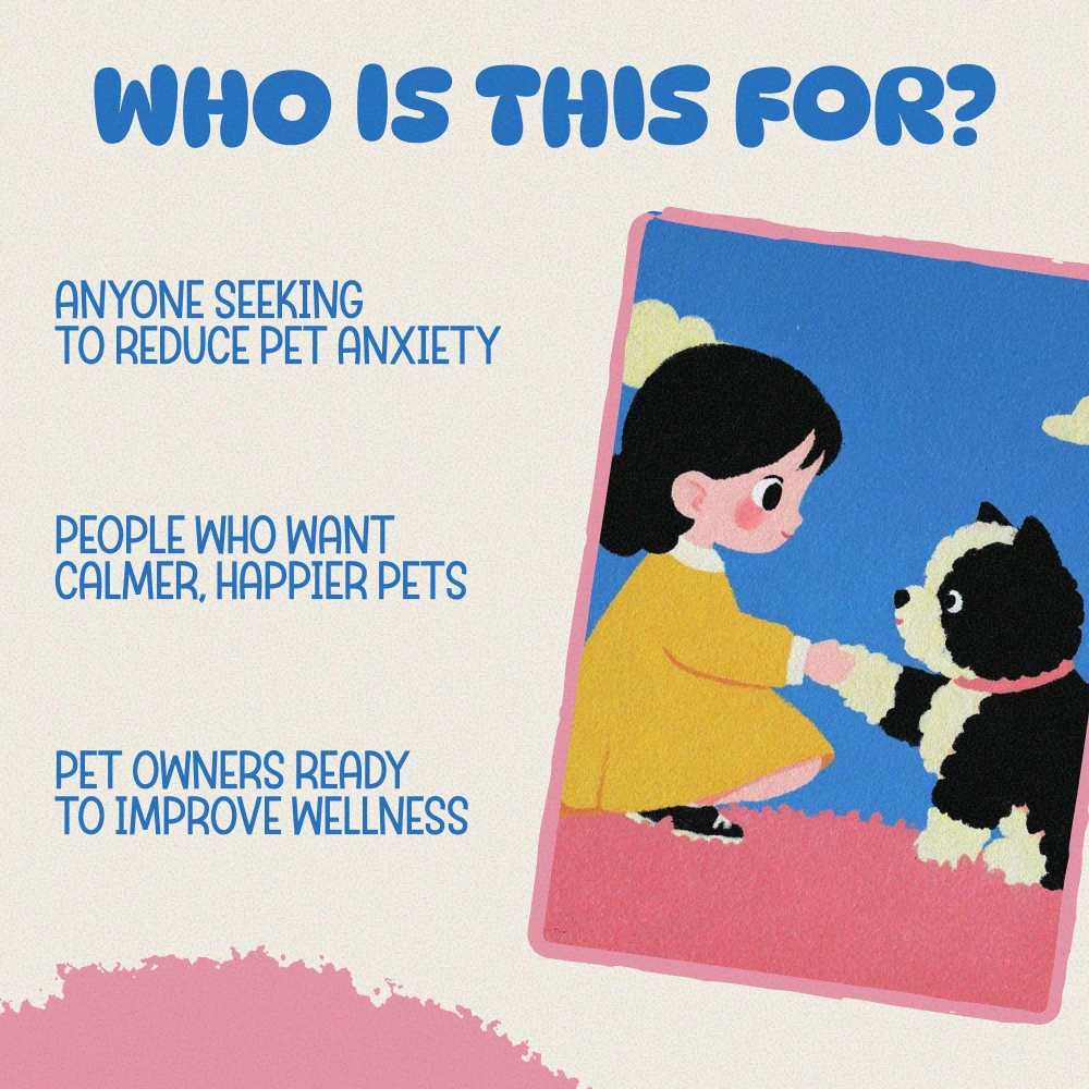 I've been using this toolkit for a few weeks now, and it's made such a difference in my pet's behavior. The guide on mental wellness was really insightful, helping me understand what could be causing stress. Implementing the recommended routines has helped create a calmer environment at home. Plus, the calming scent checklist is simple to follow and so effective!