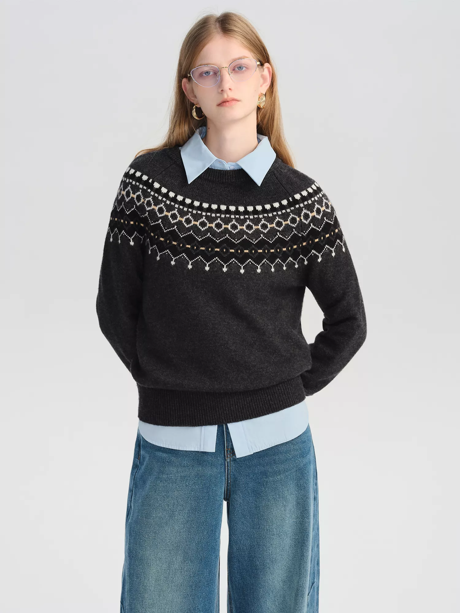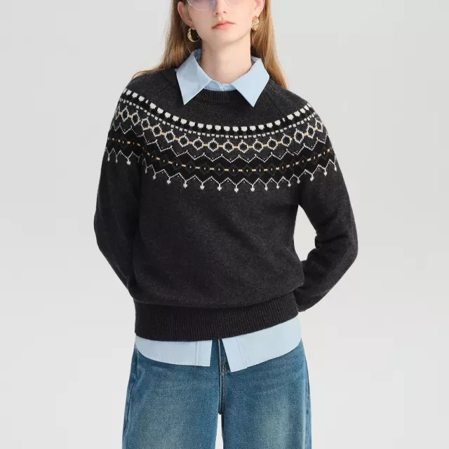 This sweater stands out for its authentic Fair Isle argyle pattern and carefully balanced fabric blend. Made with a mix of nylon, sheep wool, and acrylic, it offers warmth without feeling heavy or bulky. The medium-weight knit provides structure while keeping it light enough for layering over shirts or under coats. Its loose fit adds a relaxed, effortless touch that flatters petite frames beautifully.