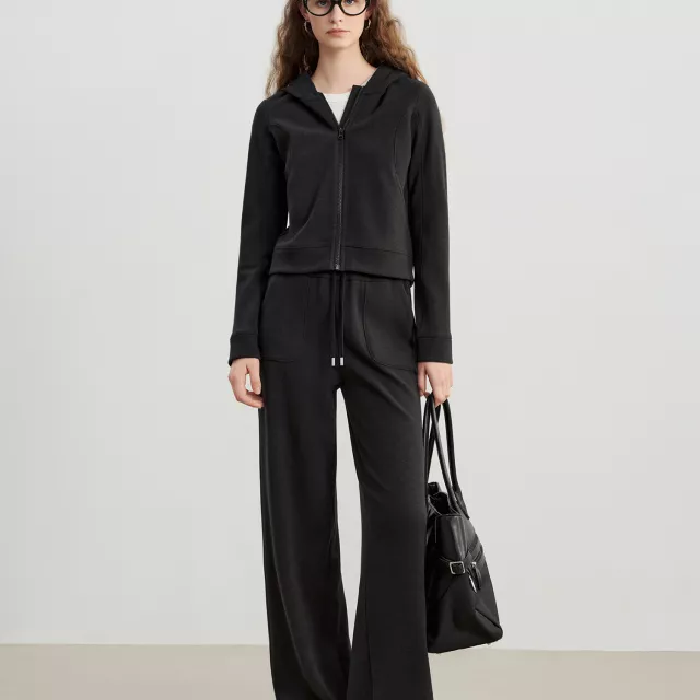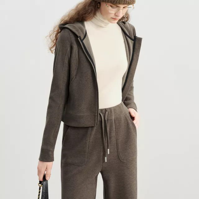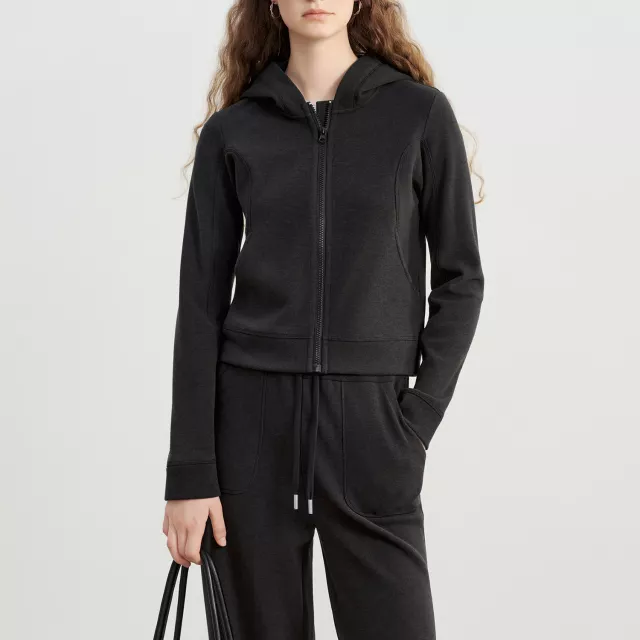 Petite Velvet Zip-Up Hooded Cardigan for Women