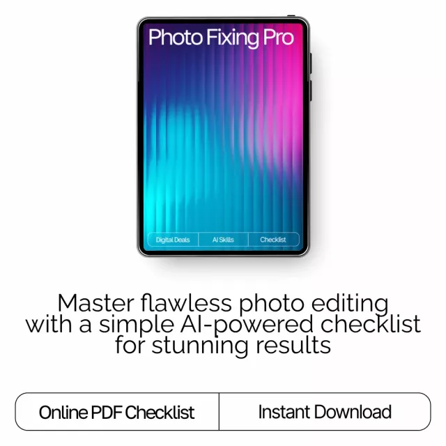 Unlike long tutorials or complex guides, Photo Fixing Pro is designed to be a fast, practical companion you can use during every editing session. It combines expert-level tips with accessible steps anyone can follow. Plus, it integrates ai tools for fixing photo flaws naturally within the workflow, helping you get crisp, natural-looking results without losing your creative touch.