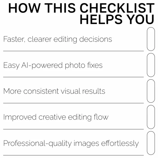 Transform every photo into a polished, professional-looking image with Photo Fixing Pro, your go-to digital checklist for mastering seamless edits using ai tools for fixing photo flaws. Whether you’re a hobby photographer, content creator, small business owner, or someone who simply loves beautiful visuals, this easy-to-follow checklist guides you step-by-step through improving your images with clarity and confidence. Designed for both beginners and seasoned editors, it helps you save time, enhance consistency, and unlock more creative control—no guesswork required.