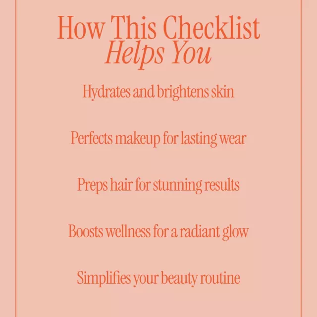Whether you’re a bride-to-be or part of the wedding party, this downloadable checklist is packed with simple yet effective tips that help your beauty routine shine. With a focus on hydration, skincare, and makeup, it covers everything from prepping your skin to ensuring your makeup lasts all day and night. Plus, with special attention to hair and body prep, you’ll be camera-ready from head to toe.