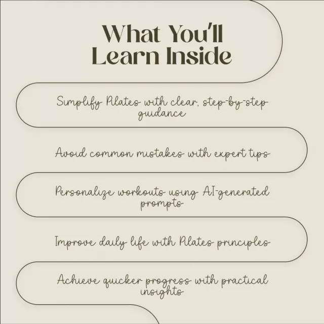This guide has transformed my Pilates practice! It's not just about learning new exercises; it's about understanding how they can impact your health and lifestyle positively. Plus, the customizable workouts using AI-powered prompts mean no two sessions are ever the same - perfect for keeping me motivated!