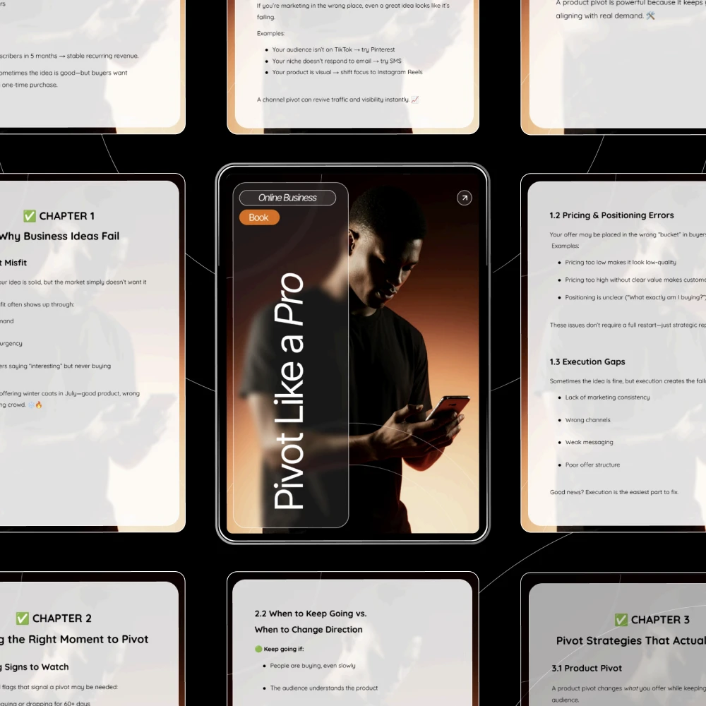 Every great entrepreneur knows that failure isn’t the end — it’s a signal to adapt. Pivot Like a Pro is a practical, insight-packed eBook that shows you exactly how to pivot your business idea if it fails. Whether your product isn’t gaining traction or your audience just isn’t responding, this guide helps you spot what’s not working, find new opportunities, and rebuild with confidence. It’s your blueprint for turning setbacks into strategies that work.