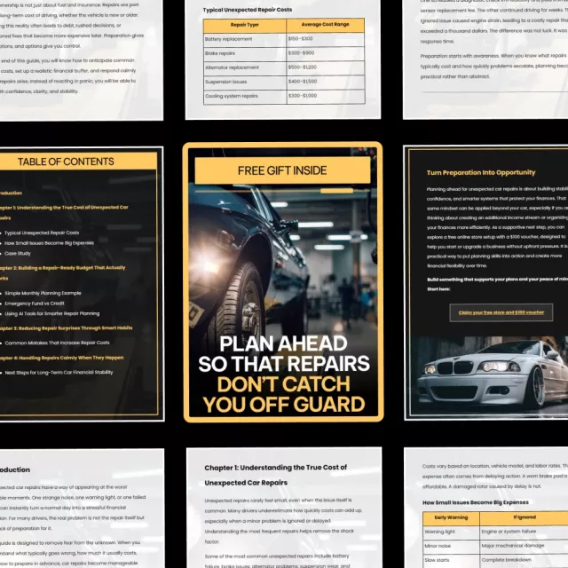 Car repairs have a way of showing up at the worst possible time. Plan Ahead So That Repairs Don’t Catch You Off Guard is a practical, easy-to-follow digital guide designed to help you stop reacting to surprise repair bills and start preparing for them with confidence. Instead of guessing, stressing, or relying on credit, this guide walks you through exactly how to plan for unexpected car repairs in a way that fits real life, real budgets, and real vehicles.