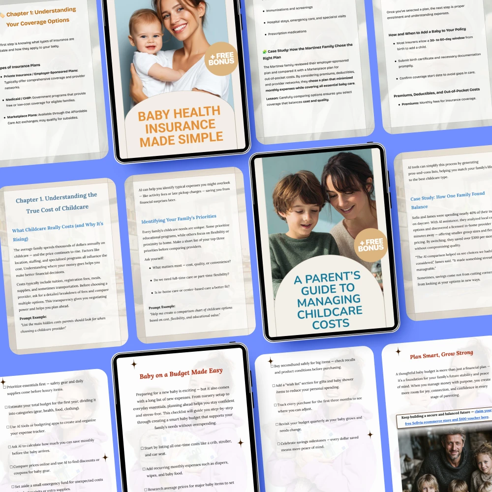 This toolkit is perfect for new and expecting parents who want to stay on top of their finances. Whether you’re preparing for the arrival of your baby or already adjusting to life with a little one, these guides will help you manage your expenses and plan for a secure financial future. If you’re wondering how to create a baby budget and need support with childcare costs and health insurance, this bundle is the perfect solution.