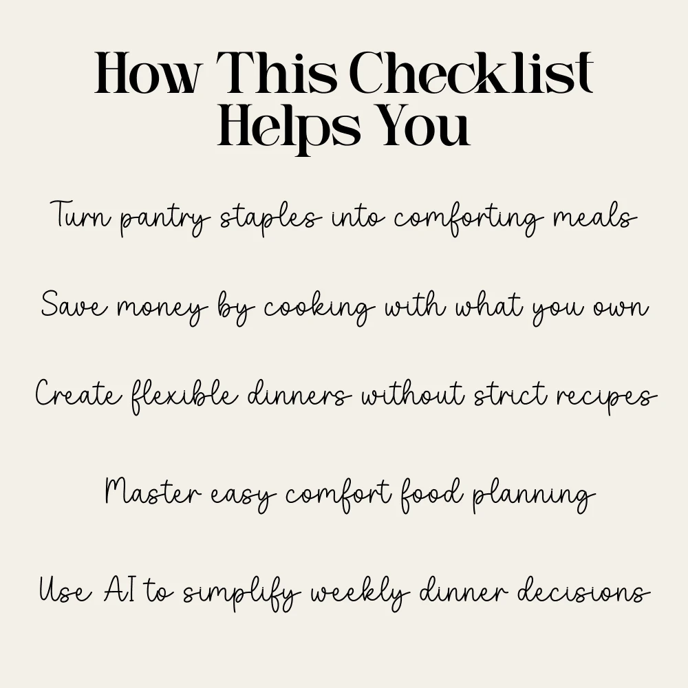 Planning a Cozy Dinner With Pantry-Staple Comfort Foods | Digital Dinner Planning Guide, Pantry Cooking Checklist, Easy Comfort Food Recipes, Meal Planning eBook