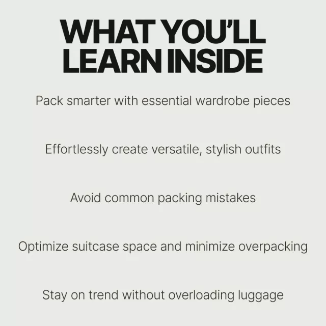 Don’t leave your travel wardrobe to chance—download this guide today and get ready to pack like a pro! With clear instructions, expert tips, and a roadmap to building your perfect vacation wardrobe, you’ll travel smarter and in style. Say goodbye to overstuffed suitcases and hello to effortless packing!