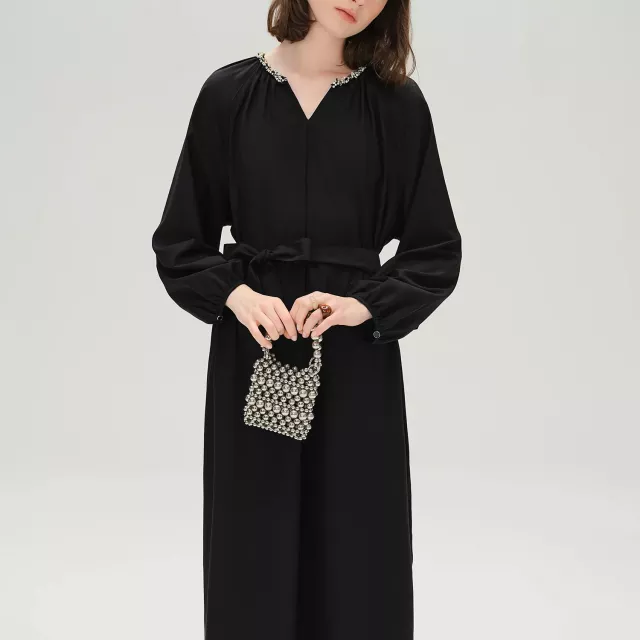 Don’t miss out on this essential winter piece. Add this elegant black dress to your wardrobe today and step into the season with confidence and style. Whether you’re dressing for work or a night out, this dress will keep you looking chic and feeling comfortable all day long.