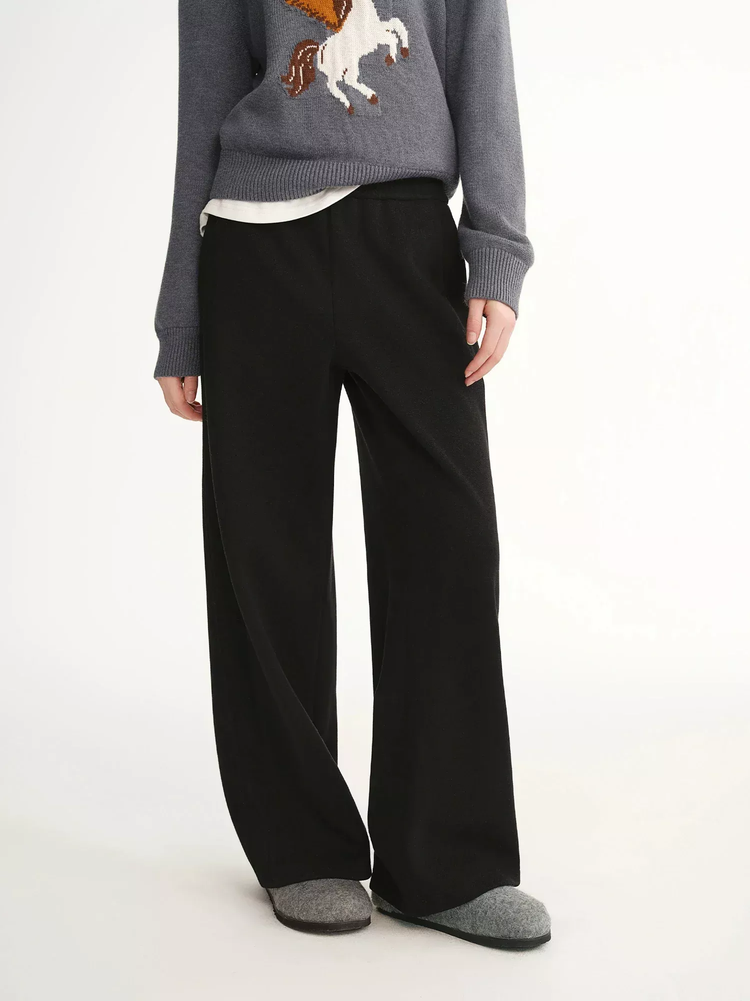These pants are crafted from a soft blended fabric made with polyester, viscose, nylon, and a touch of spandex. The material feels smooth on the outside and cozy on the inside. While the fabric has non-stretch elasticity, the elastic waistband provides flexible comfort where you need it most.