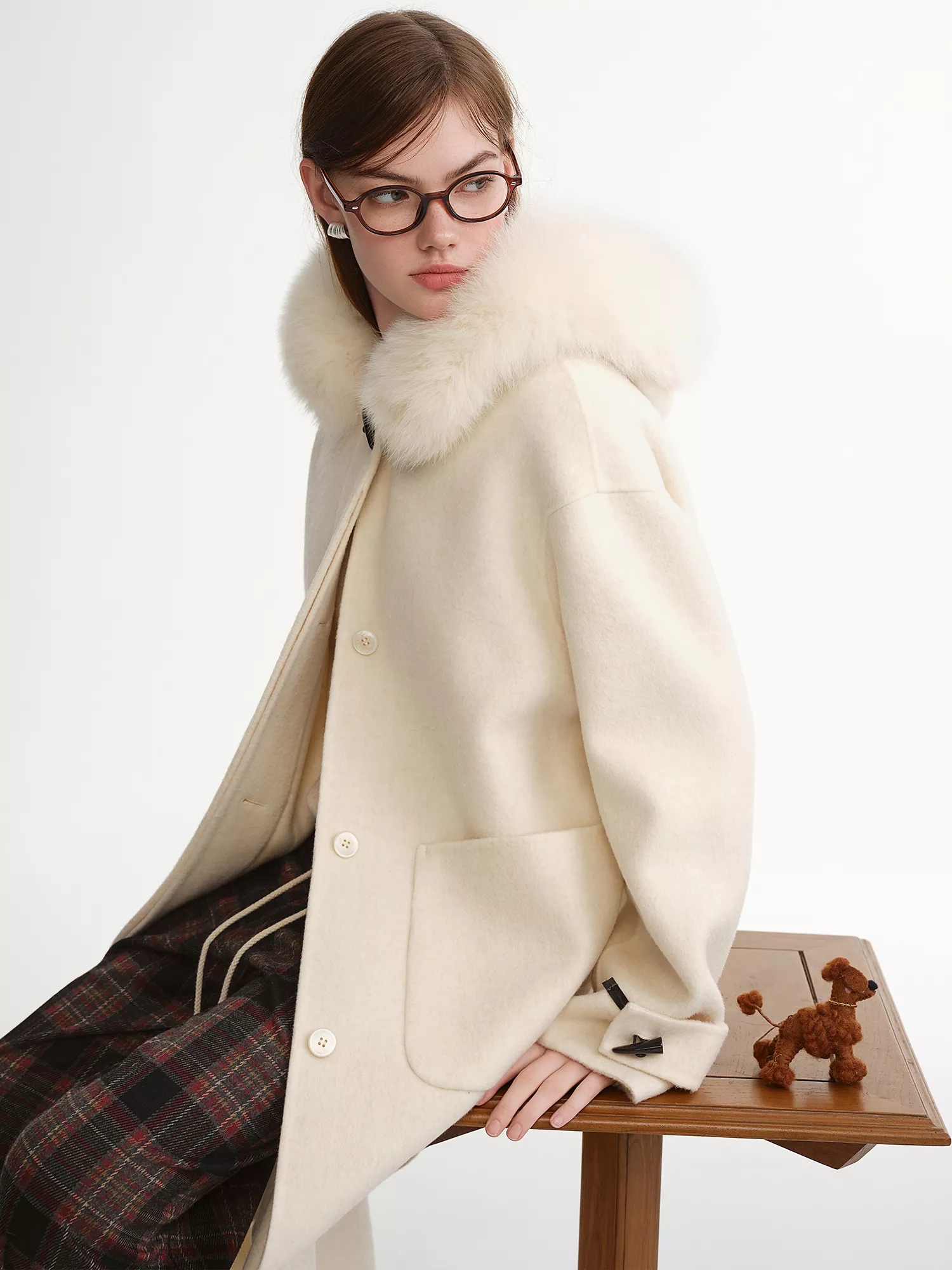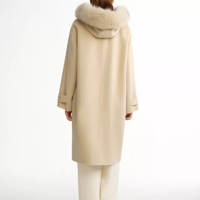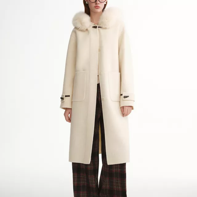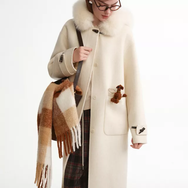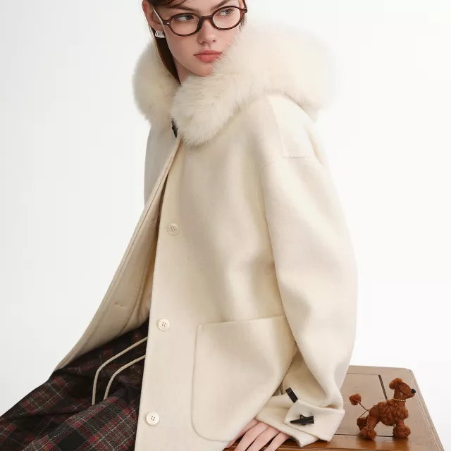 This coat stands out because of its premium double-faced wool construction. It feels smooth on the outside and cozy inside, offering natural insulation without heaviness. The real fox fur collar adds a touch of luxury and helps protect your neck from cold winds. Its wide-waist design is especially flattering for plus-size figures, giving you a balanced and confident look.