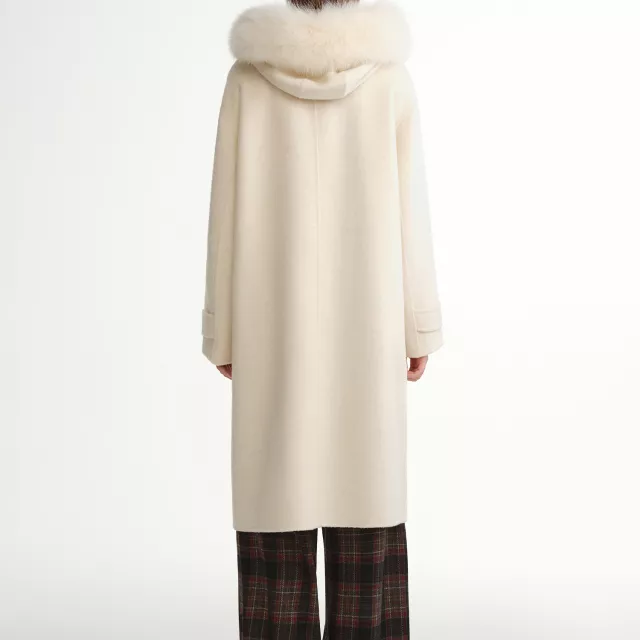 For best results, do not wash with water and avoid bleach. Use gentle dry cleaning to keep the wool texture soft and the fur collar in perfect condition.